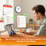 Tips Produktivitas Harian Menjaga Stabilitas Fokus Saat Ada Banyak Rapat Tips Produktivitas Harian|January 21, 2026January 21, 2026by Fayra Alesya Produktivitas harian sering kali menurun ketika jadwal dipenuhi rapat dari pagi hingga